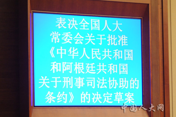 表决全国人大常委会关于批准《中华人民共和国和阿根廷共和国关于刑事司法协助的条约》的决定草案
