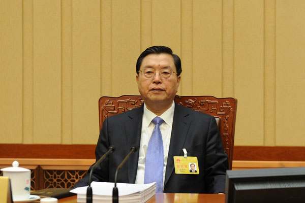 12月22日上午,张德江委员长出席十二届全国人大常委会第十八次会议第二次全体会议。中国人大网 李杰 摄