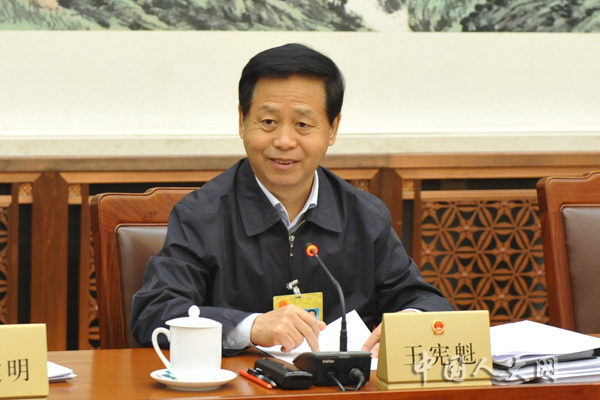 10月26日上午,十三届全国人大常委会第六次会议举行分组会议,审议基本医疗卫生与健康促进法草案,公务员法修订草案,药品管理法修正草案,拟提请表决事项。图为全国人大常委会委员王宪魁在分组会上发言。中国人大网 冯涛 摄