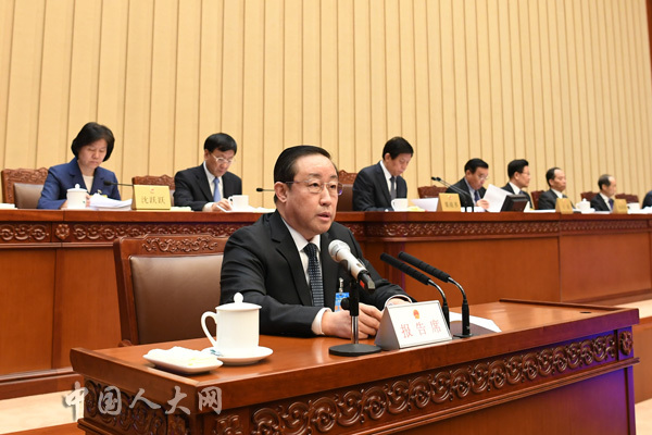 12月23日下午,十三届全国人大常委会第七次会议举行第一次全体会议。受国务院委托,司法部部长傅政华作关于提请审议《〈中华人民共和国产品质量法〉等17部法律的修正案(草案)》议案的说明。中国人大网 李杰摄