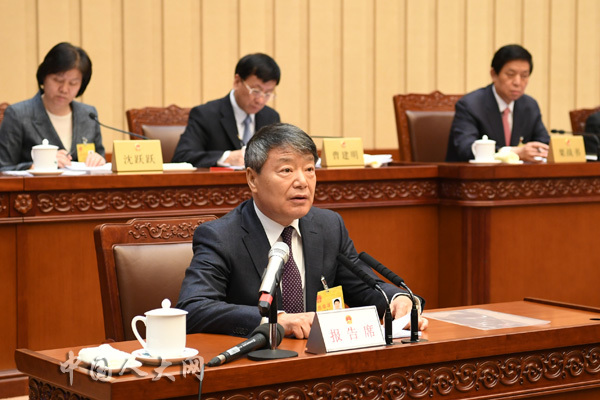 12月24日上午,十三届全国人大常委会第七次会议举行第二次全体会议。全国人大财政经济委员会主任委员徐绍史作关于《中华人民共和国国民经济和社会发展第十三个五年规划纲要》实施中期评估的专题调研报告。中国人大网 李杰 摄