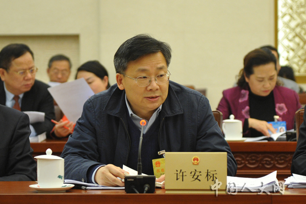 12月28日下午,十三届全国人大常委会第七次会议举行分组会议,审议疫苗管理法草案,全国人大宪法和法律委员会、教育科学文化卫生委员会、华侨委员会、环境与资源保护委员会、社会建设委员会关于第十三届全国人民代表大会第一次会议主席团交付审议的代表提出的议案审议结果的报告。图为全国人大常委会委员许安标在分组会上发言。中国人大网 陶宏林 摄