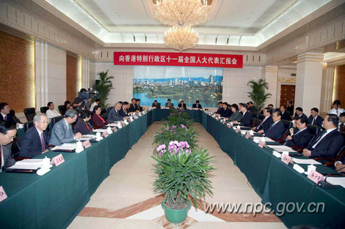 2008年10月9日至17日,香港十一届全国人大代表视察山东。这是10月14日视察团听取山东省委省政府汇报。