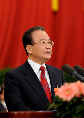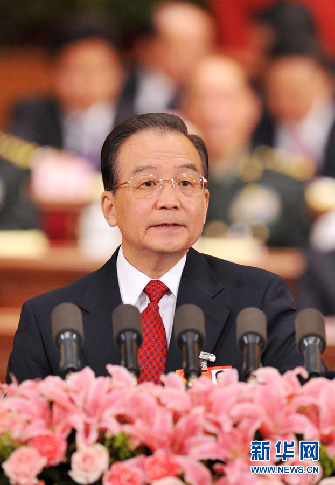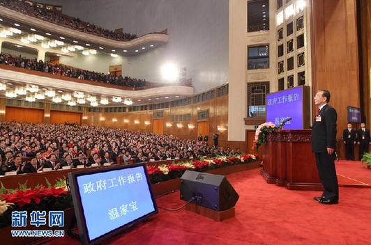 3月5日,第十一届全国人民代表大会第四次会议在北京人民大会堂开幕。国务院总理温家宝作政府工作报告。新华社记者黄敬文摄