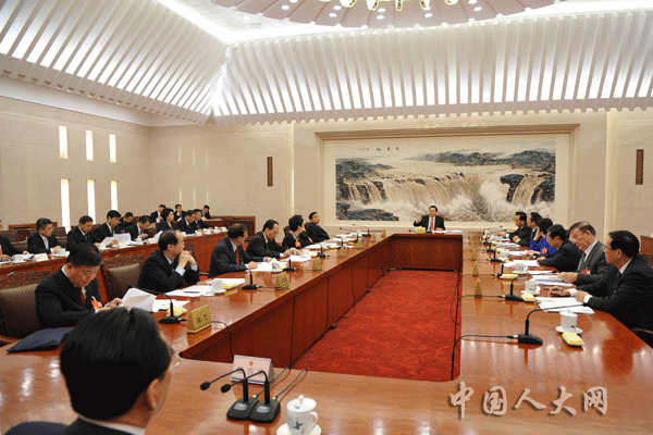 3月8日,十二届全国人大二次会议主席团常务主席第一次会议在北京人民大会堂举行。十二届全国人大二次会议主席团常务主席、全国人大常委会委员长张德江主持会议。中国人大网 李杰 摄