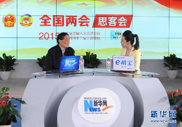 2015年3月3日,全国人大代表,娃哈哈集团董事长宗庆后做客新华会客厅。图为宗庆后在访谈现场。新华网 陈竞超 摄