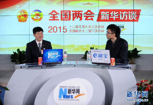 2015年3月3日,全国人大代表、福州市市长杨益民做客新华网,谈福州新区建设。图为杨益民在访谈现场。新华网 郭 研摄