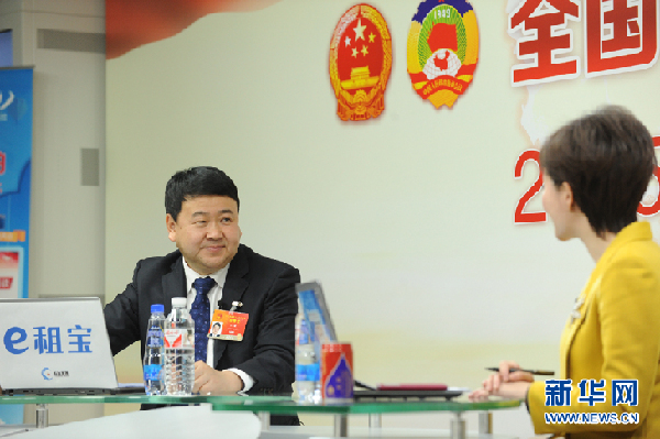 2015年3月3日,全国人大代表、福建省龙岩市委书记梁建勇作客新华访谈。图为嘉宾梁建勇在访谈中。新华网 贾振 摄