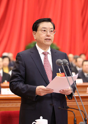 3月15日,第十二届全国人民代表大会第三次会议在北京人民大会堂举行闭幕会。张德江主持闭幕会并讲话。 新华社记者 兰红光摄