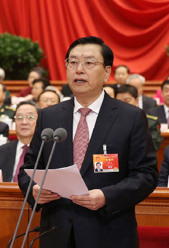 3月15日,第十二届全国人民代表大会第三次会议在北京人民大会堂举行闭幕会。张德江主持闭幕会并讲话。 新华社记者 马占成摄