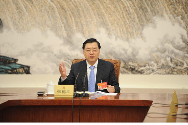 十二届全国人大三次会议主席团常务主席、全国人大常委会委员长张德江主持会议