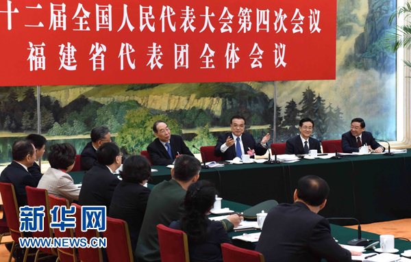 3月7日,中共中央政治局常委、国务院总理李克强参加十二届全国人大四次会议福建代表团的审议。 新华社记者饶爱民摄