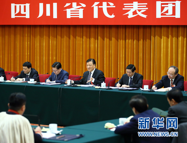 3月7日,中共中央政治局常委、中央书记处书记刘云山参加十二届全国人大四次会议四川代表团的审议。 新华社记者丁海涛摄