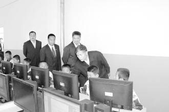 图为执法检查组在格尔木市十二中学网络教室进行实地检查。本报记者 张媛摄