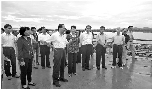全国人大常委会农产品质量安全法执法检查组在广西钦州茅尾海大蚝种苗基地检查钦州大蚝生产情况。