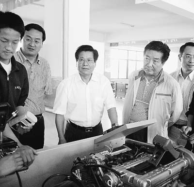 调研组在青海省西宁市世纪职业技术学校实训车间了解情况。陈 丰摄
