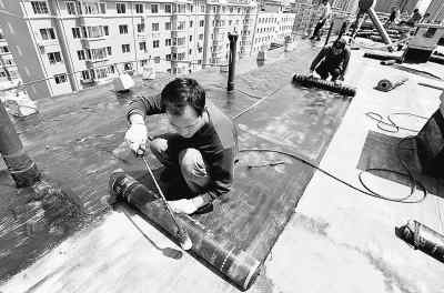 “弃管小区”改造中,工人们正在做屋顶防水。张 新 博晓辉摄