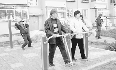 长青实业小区居民们正在小区改造后新建的健身器材上锻炼。张 新 博晓辉摄