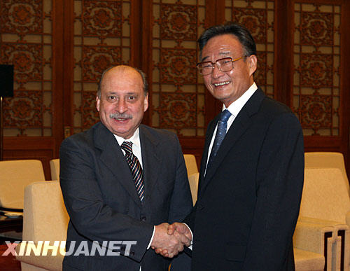 9月16日,全国人大常委会委员长吴邦国在人民大会堂会见前来出席北京残奥会闭幕式的阿根廷临时参议长潘普罗。
