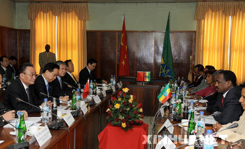 11月9日,正在埃塞俄比亚进行正式友好访问的全国人大常委会委员长吴邦国在亚的斯亚贝巴与埃塞俄比亚人民代表院议长特肖梅举行会谈。新华社记者高洁摄