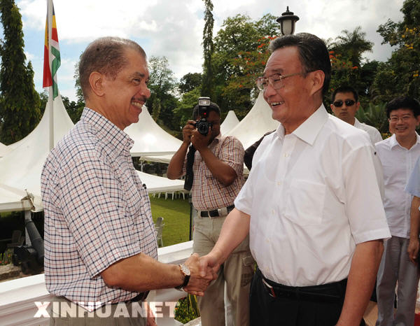 吴邦国抵达维多利亚开始对塞舌尔进行正式友好访问