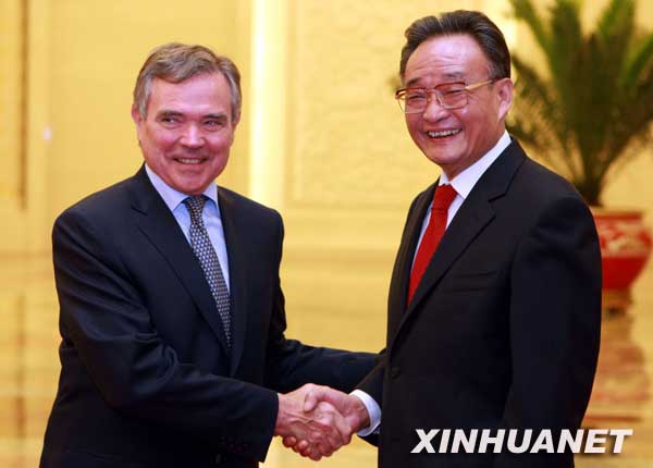 吴邦国说,中法建交45年来,两国关系曾长期走在中国与西方国家关系的前列。但前段时期,中法关系出现了严重困难,这是所有致力于中法友好的有识之士都不愿看到的。经过双方共同努力,中法发表新闻公报,法方在涉藏问题上明确了立场,使中法关系得以恢复。不久前,两国元首在二十国集团领导人伦敦金融峰会期间举行会晤,开启了两国关系的新局面。吴邦国强调,中方高度重视中法关系,坚持中法长期友好、不断深化两国全面战略伙伴关系的方针不会改变,在新形势下,愿同法方携手努力,按照新闻公报阐明的原则,加强各领域务实合作,共同应对金融危机等全球性挑战,为世界的和平、稳定与发展继续做出积极贡献。