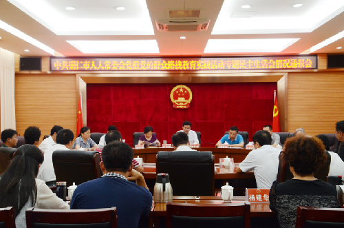 按照省委第六督导组的安排,7月23日,市人大常委会召开党组党的群众路线教育实践活动专题民主生活会情况通报会。市人大常委会党组书记、主任雷甘霖主持会议并通报了市人大常委会党组专题民主生活会情况。市人大常委会党组成员龙卫东、王开禄、陈建萍、冉敏以及市人大机关部分离退休老同志、科级以上干部参加会议。