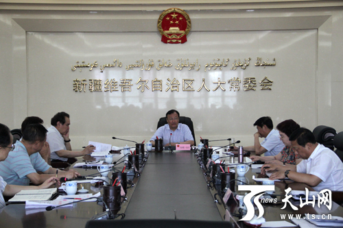自治区人大常委会党组书记、主任雪克来提扎克尔主持会议并讲话。他强调,党的十八大以来,习近平总书记就推进依法治国方略、建立社会主义法治国家发表过多次讲话,要求以宪法为统帅,坚持依法治国、依法执政、依法行政与法治国家、法治政府、法治社会共同推进、一体建设。就新疆而言,当前发展势头良好、社会大局稳定,但稳中有变数、稳中有风险、稳中有忧虑。为此,法治中国建设在新疆的实践就显得尤为迫切和重要。