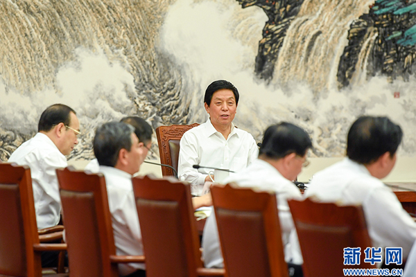 7月2日,中共中央政治局常委、全国人大常委会委员长栗战书在北京主持召开会议,同参加全国省级人大常委会秘书长工作交流会的省级人大常委会秘书长交流座谈。 新华社记者 高洁 摄