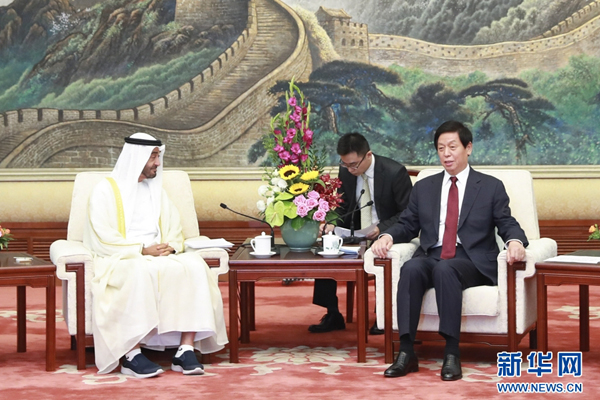 栗战书会见阿联酋阿布扎比王储穆罕默德