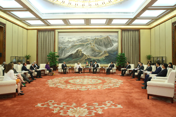 8月20日上午,中共中央政治局委员、全国人大常委会副委员长王晨在京会见美国联邦众议员泰特斯、柯克帕特里克、洛温塔尔一行。