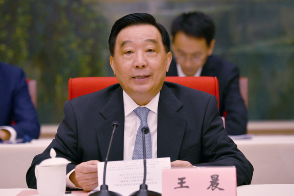王晨指出,习近平总书记在《告台湾同胞书》发表40周年纪念会上的重要讲话,为新时代对台工作提供了根本遵循和行动指南。解决台湾问题、实现祖国完全统一,是全体中华儿女的共同愿望,是中华民族的根本利益所在。两岸同胞是命运与共的骨肉兄弟,理应共担民族大义、顺应历史大势,秉持“两岸一家亲”理念,持续深化两岸融合发展,夯实和平统一基础。