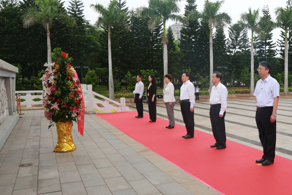 王晨一行还瞻仰了在解放海南岛战役中牺牲的烈士纪念碑并敬献花篮。