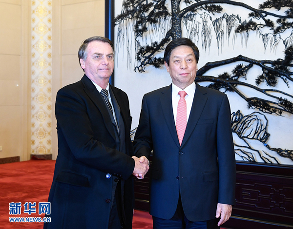 栗战书会见巴西总统博索纳罗