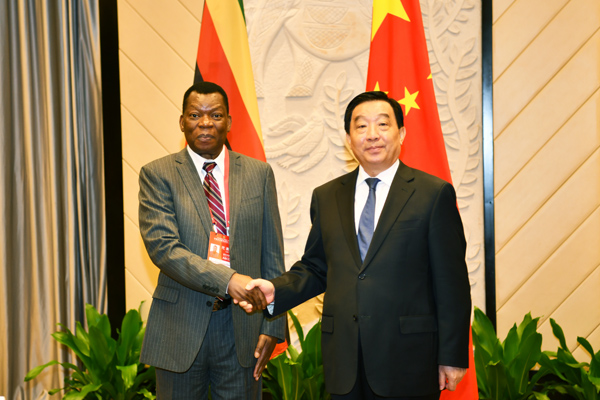 11月10日,中共中央政治局委员、全国人大常委会副委员长、中国法学会会长王晨在广州会见来华出席中国法治国际论坛(2019)的津巴布韦总检控官霍兹。