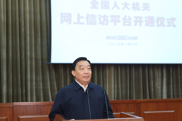 1月10日,中共中央政治局委员、全国人大常委会副委员长王晨出席全国人大机关网上信访平台开通仪式。