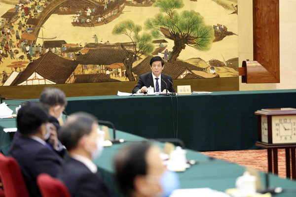 十三届全国人大常委会第四十八次委员长会议2月24日下午在北京人民大会堂举行,栗战书委员长主持会议。