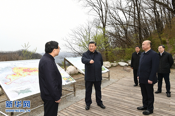 4月20日至23日,中共中央总书记、国家主席、中央军委主席习近平在陕西考察。这是4月20日,习近平在位于秦岭山脉东段的牛背梁国家级自然保护区月亮垭,察看秦岭自然生态,了解陕西省吸取秦岭北麓违建别墅问题教训、抓好生态保护等情况。新华社记者 谢环驰 摄
