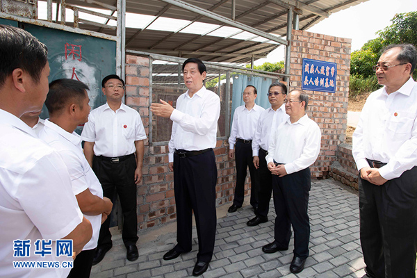 7月12日至15日,中共中央政治局常委、全国人大常委会委员长栗战书率全国人大常委会执法检查组在广西检查野生动物保护法和全国人大常委会关于全面禁止非法野生动物交易、革除滥食野生动物陋习、切实保障人民群众生命健康安全的决定的实施情况。这是7月12日,栗战书在南宁市青秀区新竹社区调研人大代表联络站和基层立法联系点建设情况。 新华社记者 李涛 摄