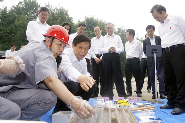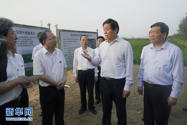 8月23日至26日,中共中央政治局常委、全国人大常委会委员长栗战书率全国人大常委会执法检查组在江苏、山东检查土壤污染防治法实施情况。这是8月25日,栗战书在山东济南进行实地检查。 新华社记者 刘卫兵 摄