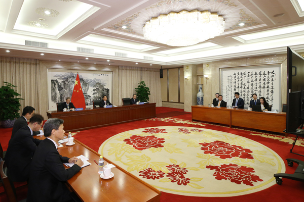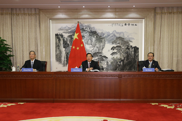 9月17日,中共中央政治局委员、全国人大常委会副委员长王晨在京同俄罗斯联邦委员会副主席乌马哈诺夫举行视频会晤。