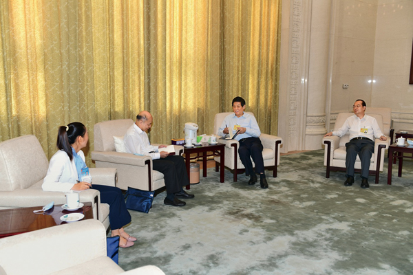 2019年2月26日下午,栗战书委员长邀请列席十三届全国人大常委会第九次会议的如克亚木·麦提赛地座谈交流,听取意见建议。