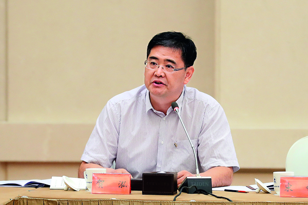 2018年5月24日至28日,栗战书委员长率队在河南开展大气污染防治法执法检查。图为贺泓代表作为检查组成员,在执法检查座谈会上发言。摄影/新华社记者 丁林