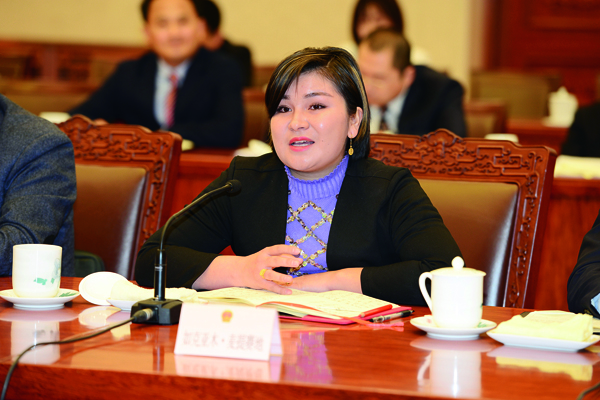 2019年2月26日,栗战书委员长主持召开列席常委会会议的全国人大代表座谈会。图为栗战书听取如克亚木·麦提赛地代表发言。摄影/《中国人大》全媒体记者 马增科