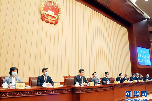 10月17日,十三届全国人大常委会第二十二次会议在北京人民大会堂闭幕。栗战书委员长主持会议。 新华社记者 刘卫兵 摄