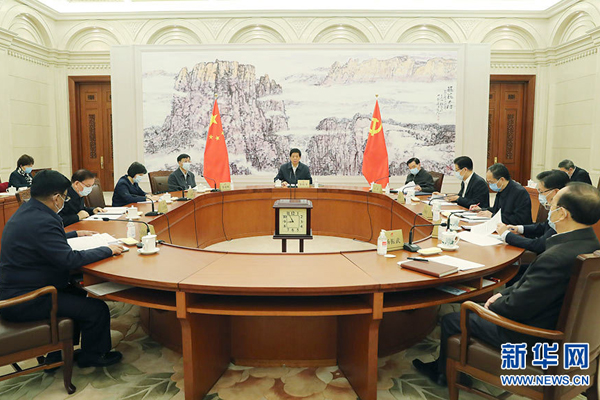 10月30日,中共全国人大常委会党组在北京举行会议,传达学习习近平总书记在党的十九届五中全会上的重要讲话和全会精神。中共中央政治局常委、全国人大常委会委员长、党组书记栗战书主持会议并讲话。新华社记者 姚大伟 摄