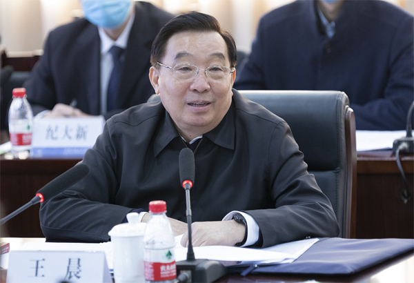 11月26日,中共中央政治局委员、全国人大常委会副委员长、中国法学会会长王晨在中国人民大学调研。戎珊 摄