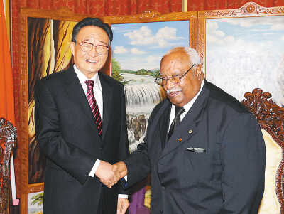 11月10日,正在埃塞俄比亚进行正式友好访问的吴邦国委员长在总统府会见埃塞俄比亚总统吉尔马。新华社记者 高 洁摄