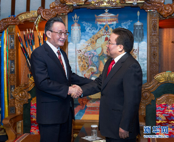 吴邦国说,中蒙是山水相连的重要邻邦。睦邻友好,是中蒙两国的必然选择,符合两国和两国人民的根本利益,也有利于地区的和平稳定与发展。在新的形势下,不断开创中蒙关系新局面,很重要的是从战略高度牢牢把握两国关系发展大方向,不断增进战略互信,在涉及对方主权、安全、发展利益等重大问题上相互理解、相互支持。吴邦国表示,中国将始终不渝走和平发展道路,坚持与邻为善、以邻为伴的周边外交方针,巩固睦邻友好,加强互利合作,努力使中国自身发展更好惠及周边国家。中方乐见蒙古国经济发展、社会稳定、人民幸福,将一如既往尊重蒙古国的独立、主权和领土完整,尊重蒙古国人民自主选择的发展道路和内外政策。中方赞赏蒙新一届政府继续将对华关系作为外交政策的首要方针,愿同蒙方一道推动中蒙战略伙伴关系不断发展。