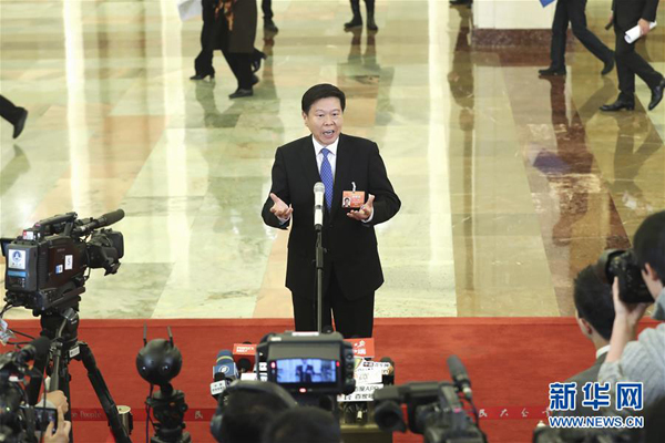 3月12日,十三届全国人大二次会议在北京人民大会堂举行第三次全体会议。这是国家税务总局局长王军在“部长通道”接受采访。 新华社记者殷刚摄